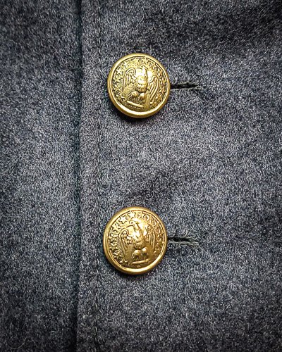 CLOSE UP DETAILS OF OFFICER'S FROCK.