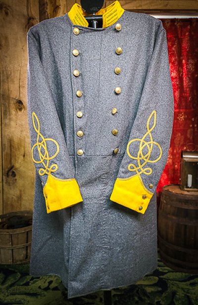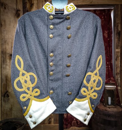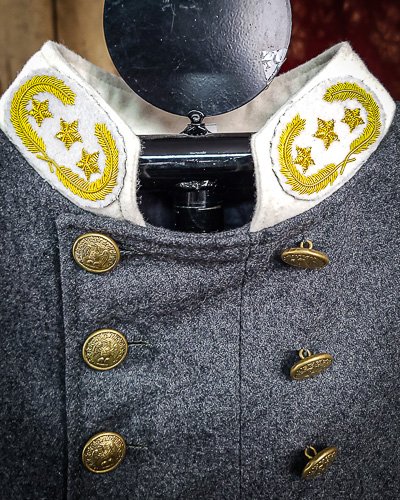 All of our double breasted frocks come with the appropriate collar rank and Confederate Staff Officers buttons sewn on .