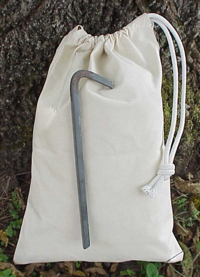 If you camp with a wall tent and fly you know that's quite a bit of equipment to manage. So anything that makes that task a little more managable would be a welcome addition I think. So here's a little helper for you. A heavy duty rope bag with tie. If you have a wall tent and fly you're dealing with a minimum of 20 ropes and as many as 28. Well they will all fit in this handy little bag keeping them all stored safe in one place. Now won't that be easier than hunting down the 3 old grocery bags you are currently using? The ones that bust and spill your ropes all over the ground. Save yourself some trouble and get one of these great bags today. #0023 $22.95 BUY NOW! TENT STAKE BAG